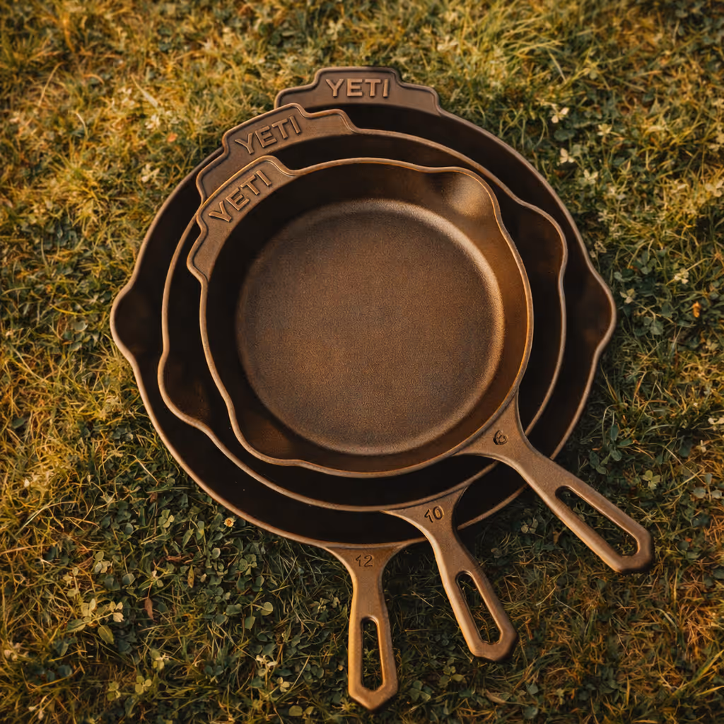 There's a certain kind of meal that only happens outdoors. It's not fussy. It's hot, smoky, slightly chaotic, and somehow tastes better because you've earned it after a day on the road. This prize is built exactly for those moments — a full three-piece set of YETI cast iron skillets ready for your campervan hob, a campsite stove, or straight over a live fire.